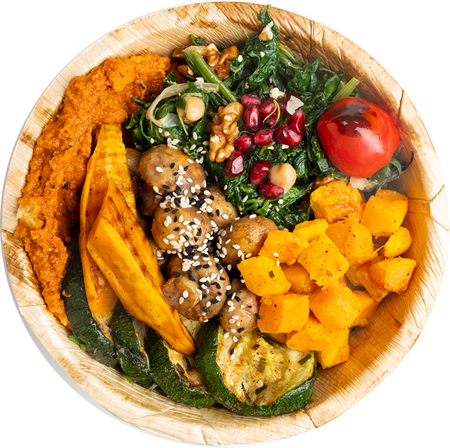 Standardtmäßig liefern wir in nachhaltigem Palmblattgeschirr, das vollständig biologisch abbaubar ist. Je nach Anlass gehen wir jedoch noch einen Schritt weiter. Für exklusive Veranstaltungen arbeiten wir auch mitPorzellangeschirr, Weckgläsern und Chafing Dishes, Perfekt für elegante Buffets und hochwertige Corporate Events.